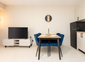 It consists of an entrance hall, a living room with a kitchenette, two bedrooms, a bathroom with a toilet, and three terraces. It is offered fully furnished and ready to use, with all necessary furniture and appliances. In excellent condition!